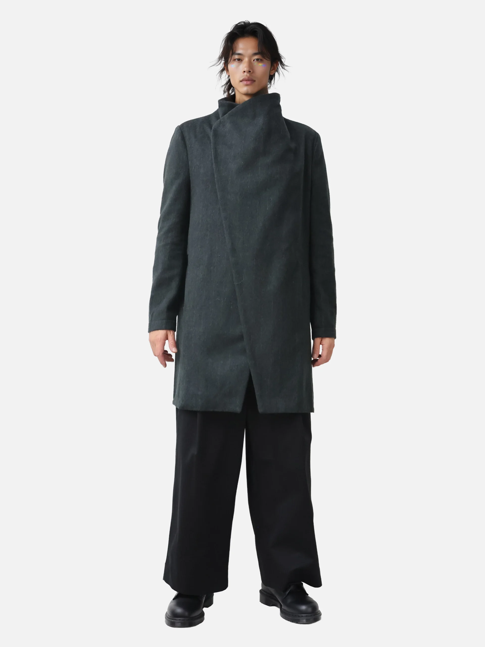 Manteau Koto croisé, non doublé, avec poches latérales. Il se ferme grace à des aimants puissants en néodyme. Cela permet au manteau de se porter de plusieurs façons.